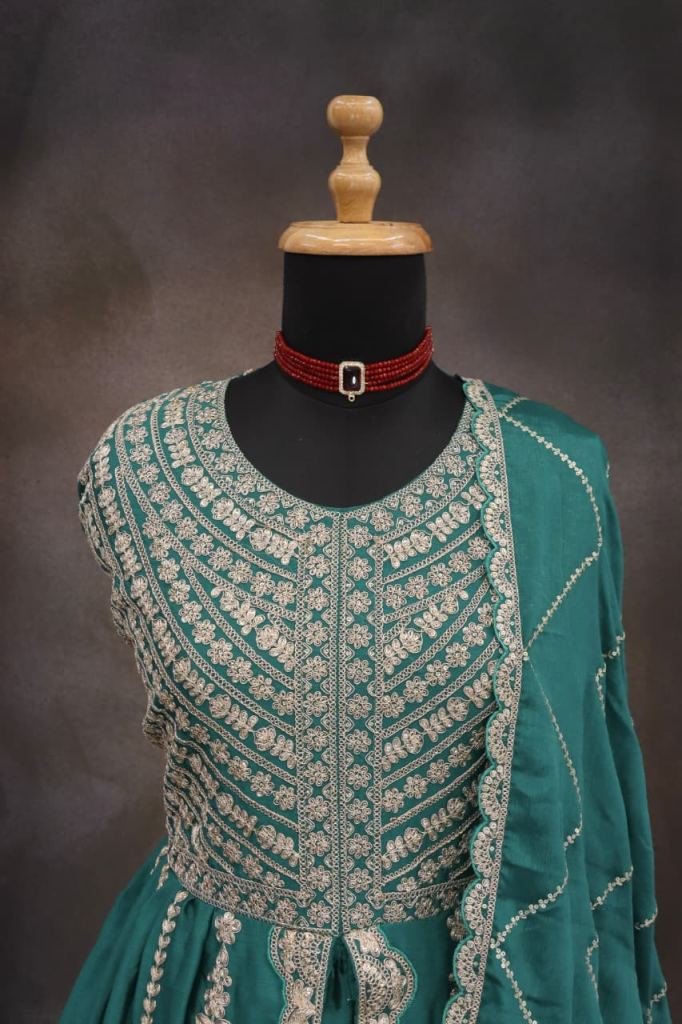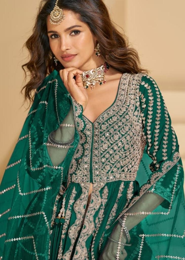 | NAME : | Sayuri Designer Mirza Anarkali Gown In Heavy Chinon Fabric With Embroidery Dark Green DN 5811 |