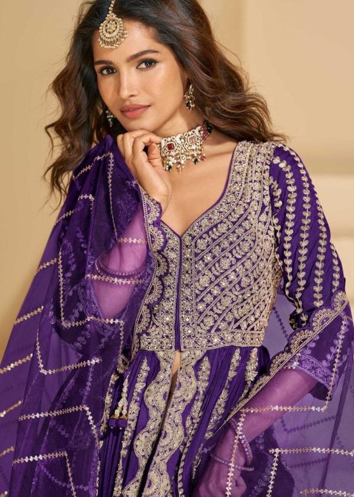 | NAME : | Sayuri Designer Mirza Premium Real Chinon Silk With Embroidery Work Anarkali Gown Wine Color DN 5811 |