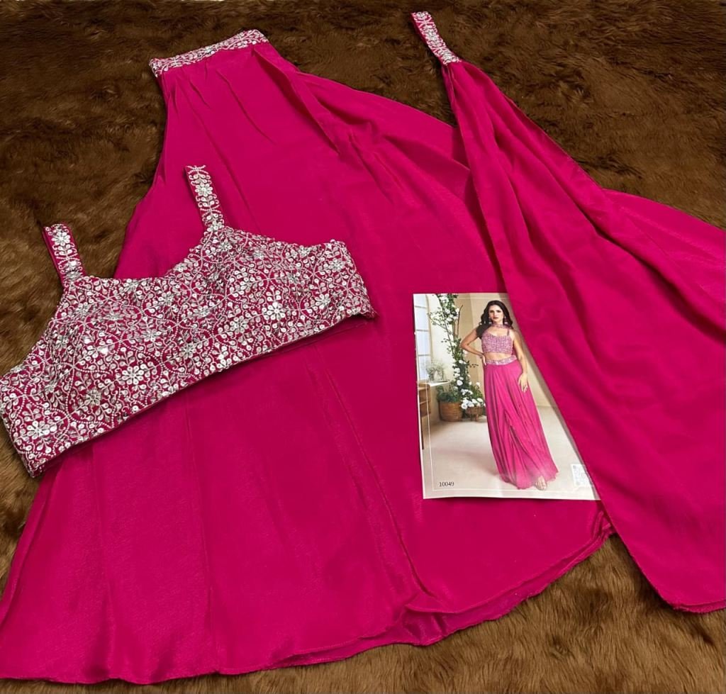 | NAME : | Sayuri Designer Moon Heavy Chinon Silk Premium 3 Piece Indo Western Rani Pink Color DN 10045 |