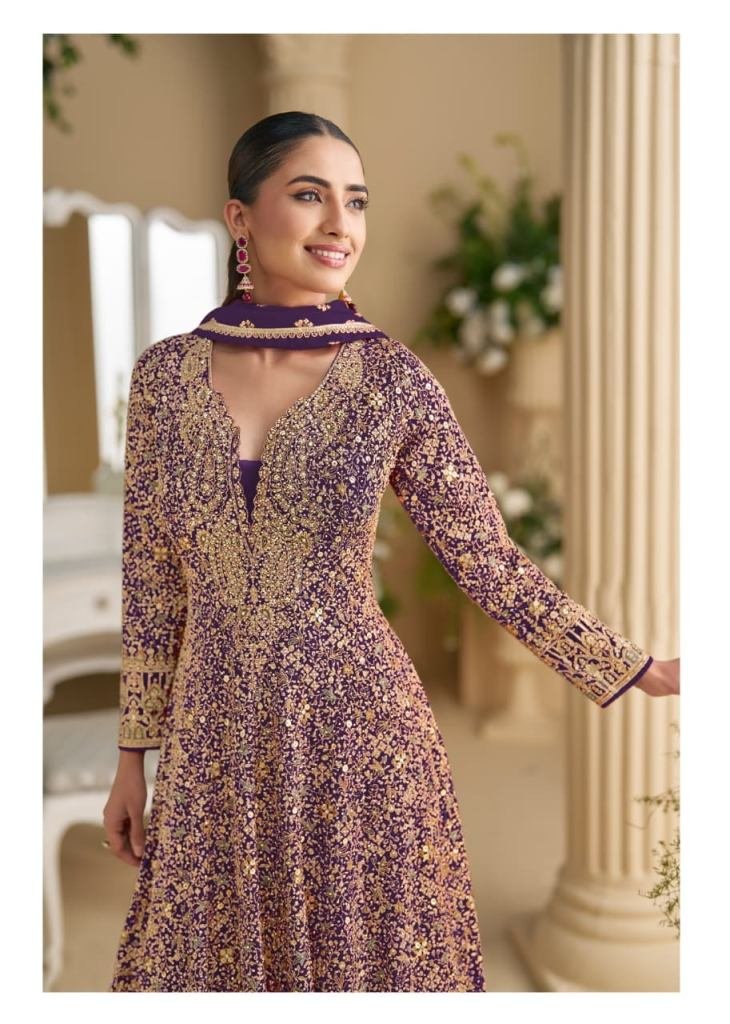 Sayuri Designer Parampara Real Premium Georgette With Heavy Embroidery And Sequence Work Anarkali Gown Purple Color DN 5807