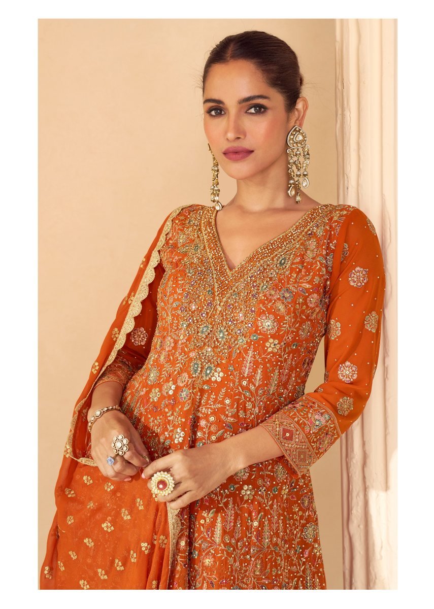 | NAME : | Sayuri Designer Sandhya DN 10150 Heavy Real Georgette With Embroidery Anarkali Suit Orange Color |