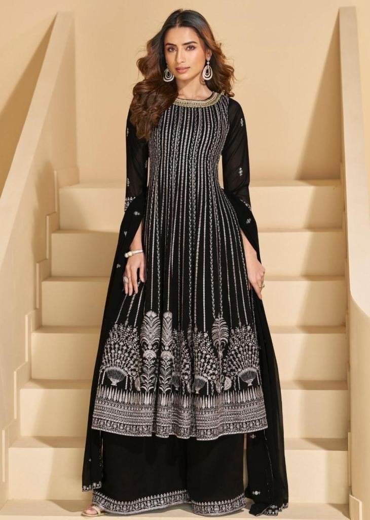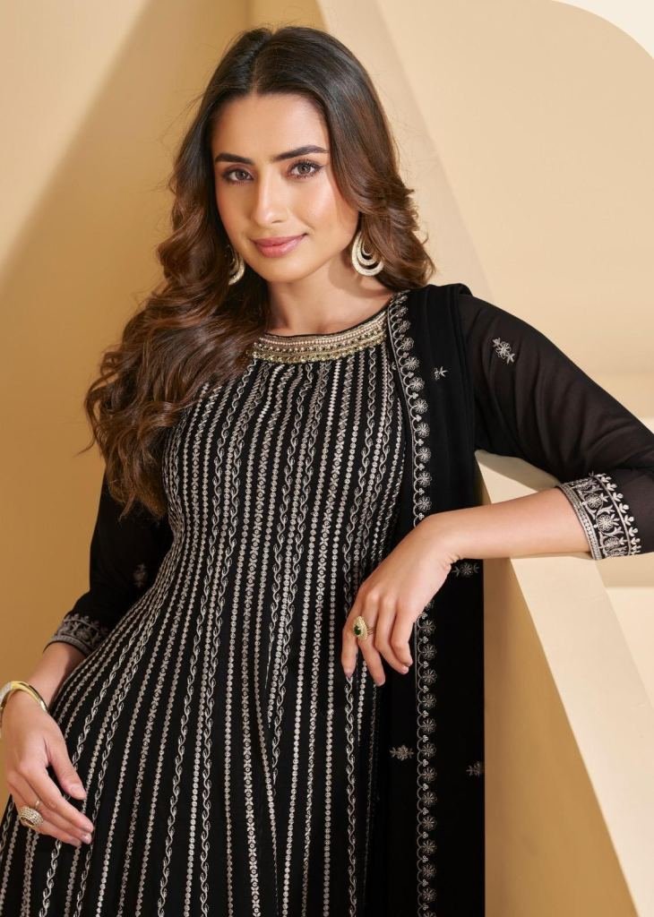 Sayuri Designer Sargam Salwar Suit Heavy Faux Georgette With Heavy Embroidery Sequence Work Black Color DN 10005