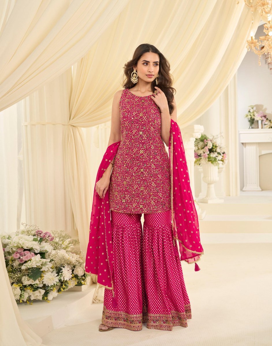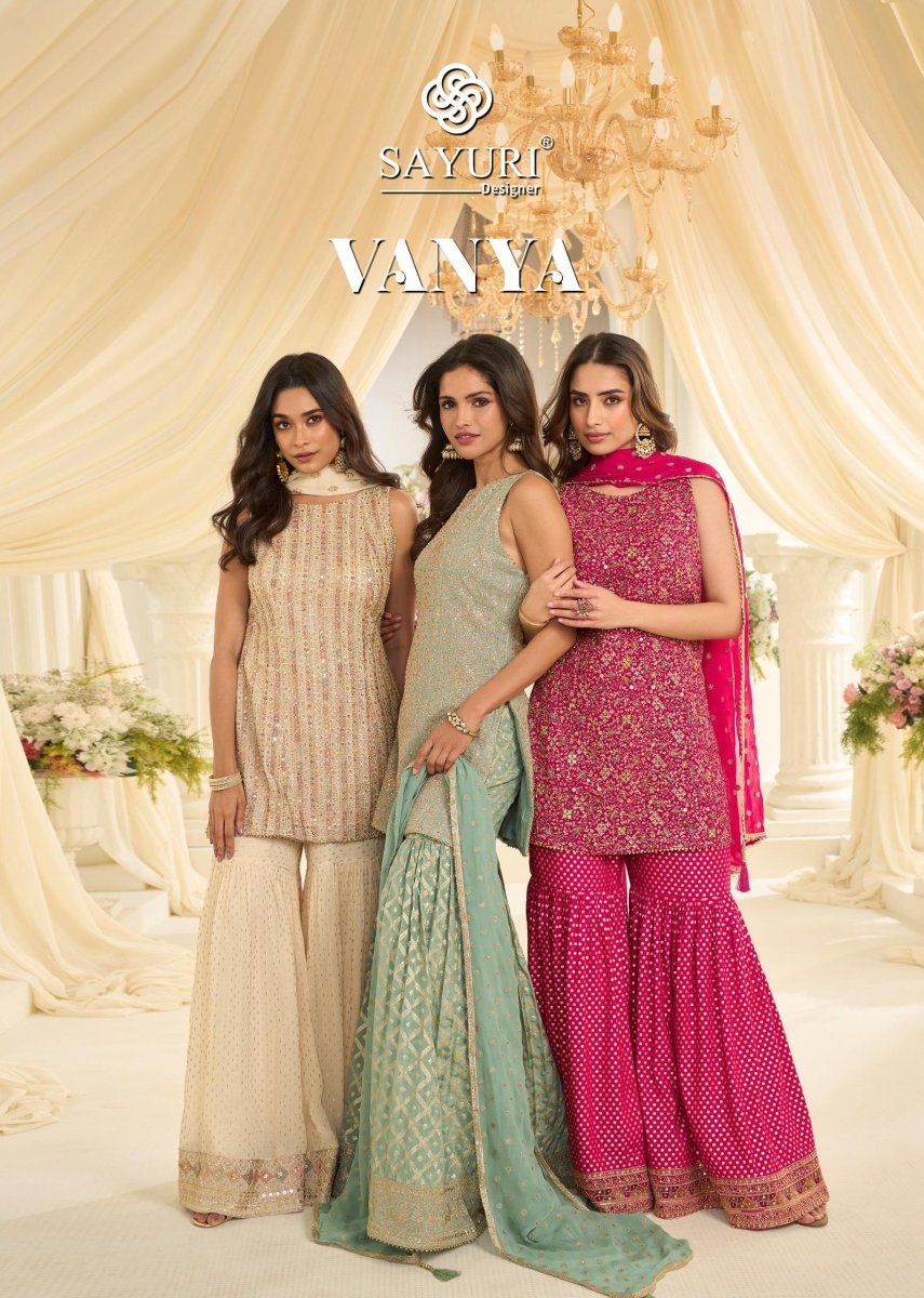 | NAME : | Sayuri Designer Vanya Premium Real Georgette With Embroidered Work Top Bottom And Dupatta Set |