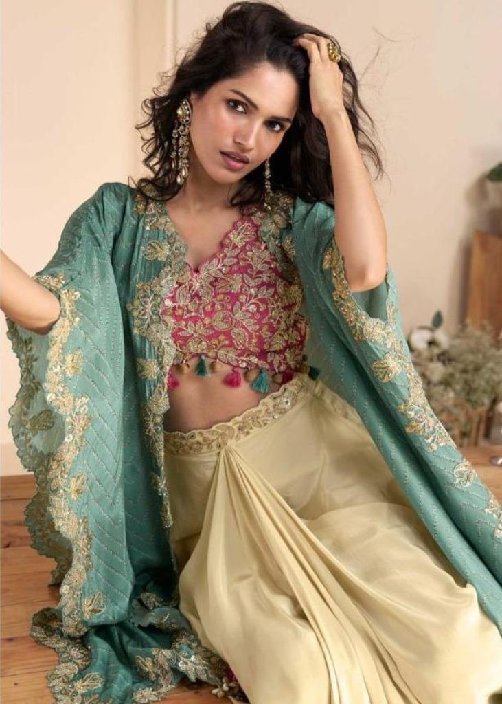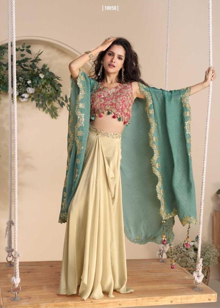Today Presenting Sayuri Designer Wonaya Wetern Style Blouse Palazzo Dupptta Heavy Chinon Silk With Embroidery sequence work