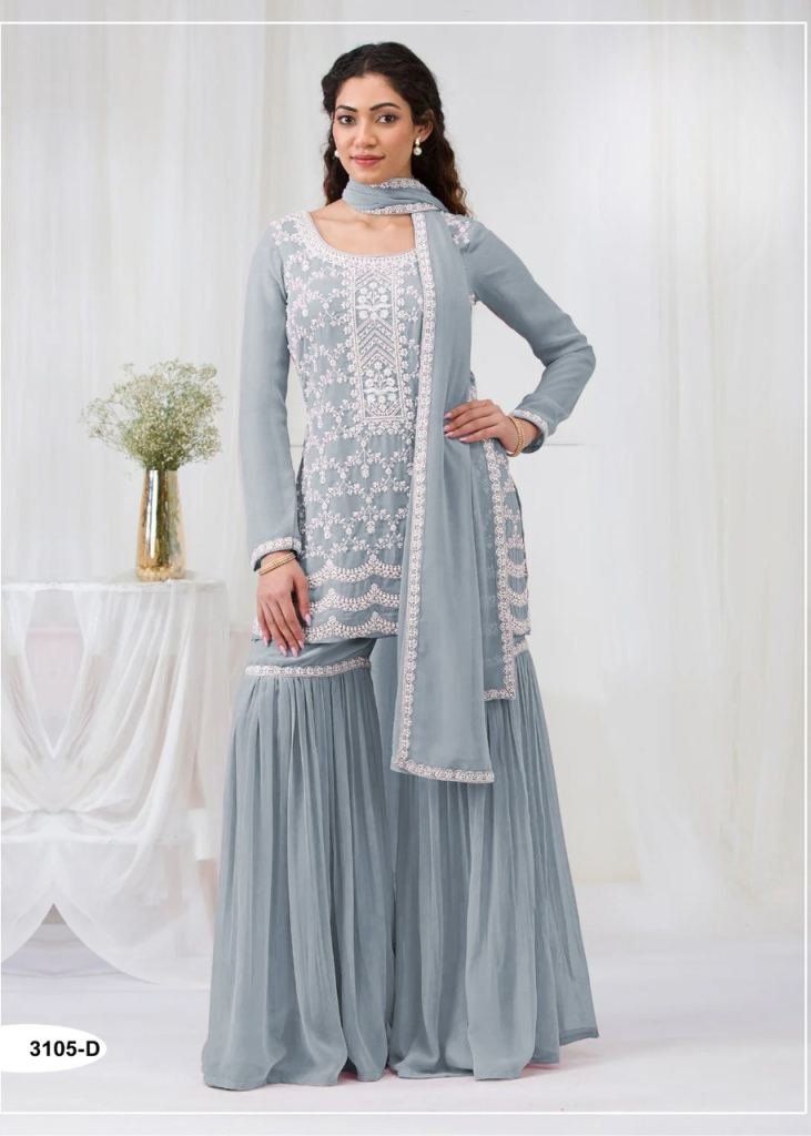 | NAME : | Sharara Suit Designer With Embroidery Work Lilac Color DN 3105 |
