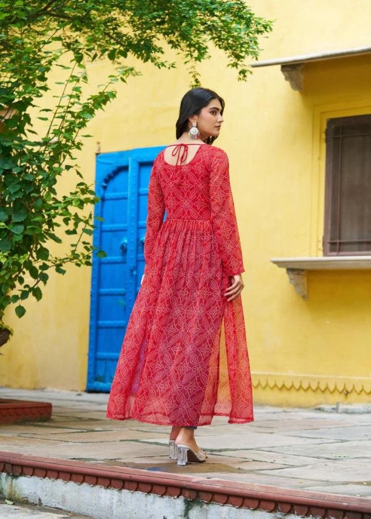 Special Navratri Collection Faux Georgette And Bandhej Print With kutch Patch Work Kurti Red Color DN 9266