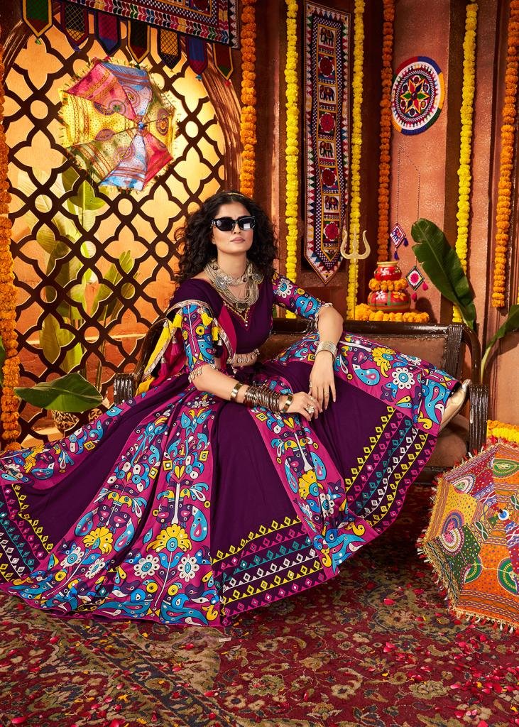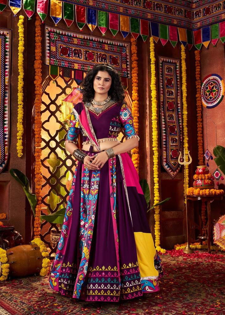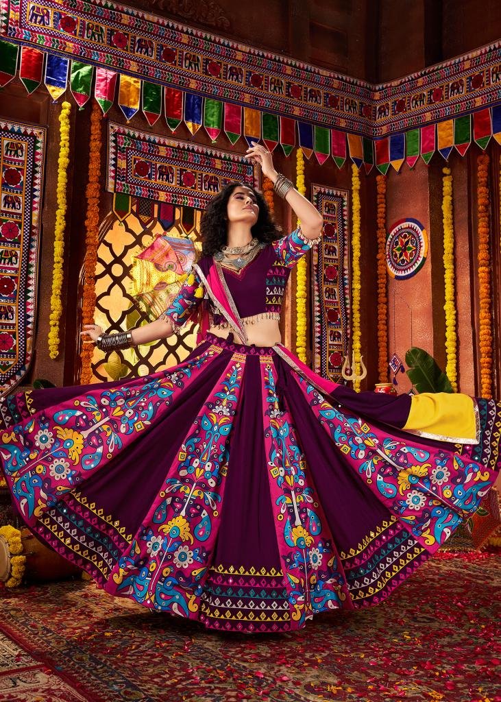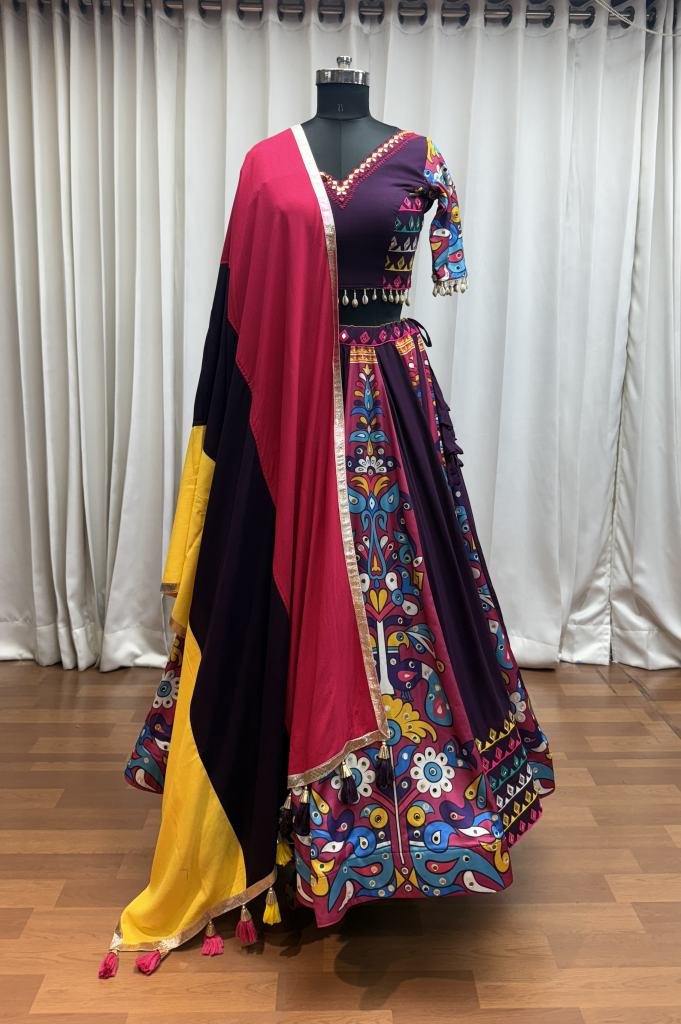 NAME : | Special Navratri Festival Chaniya Choli Viscose Cotton Digital Printed With Multi Thread And Mirror Work Purple Color |
