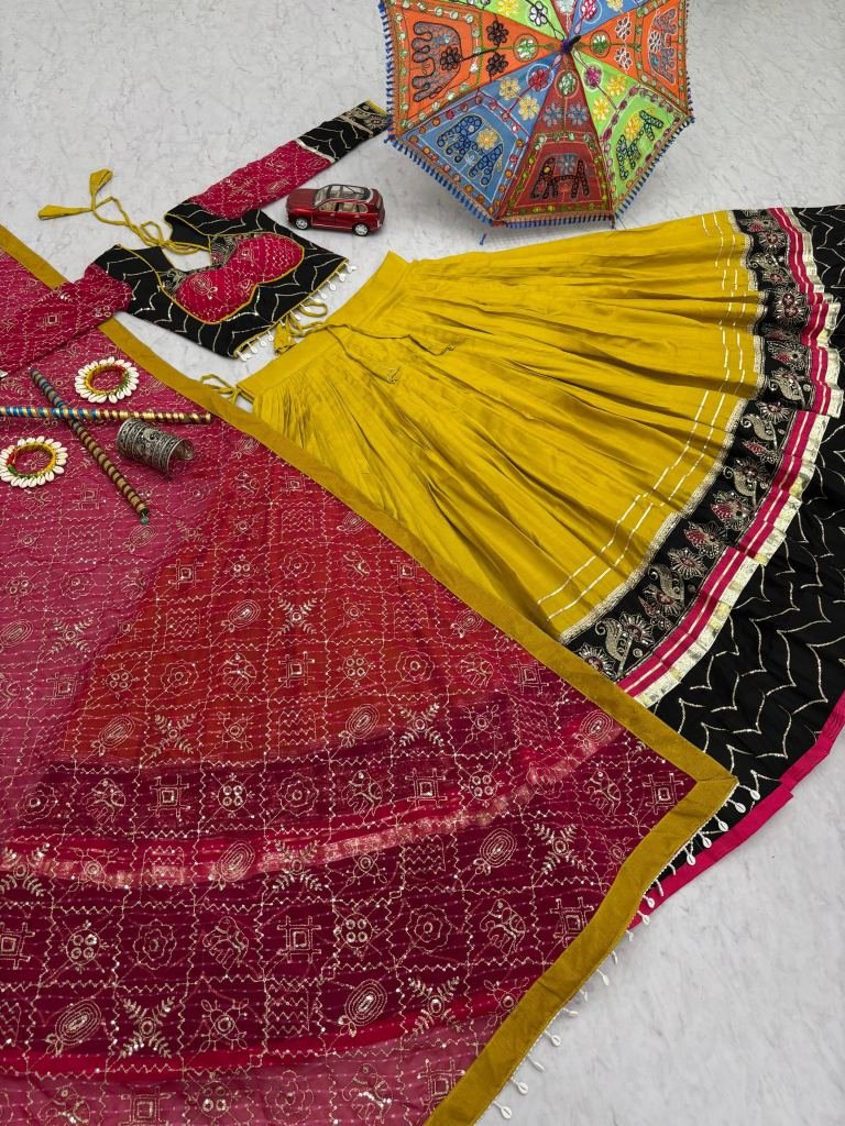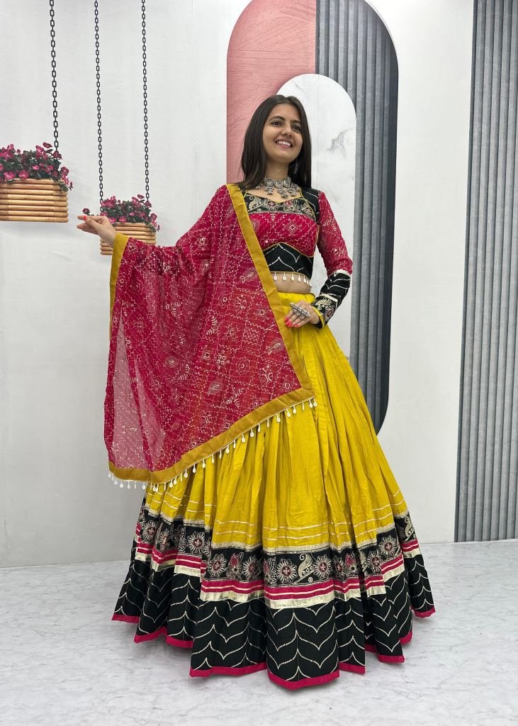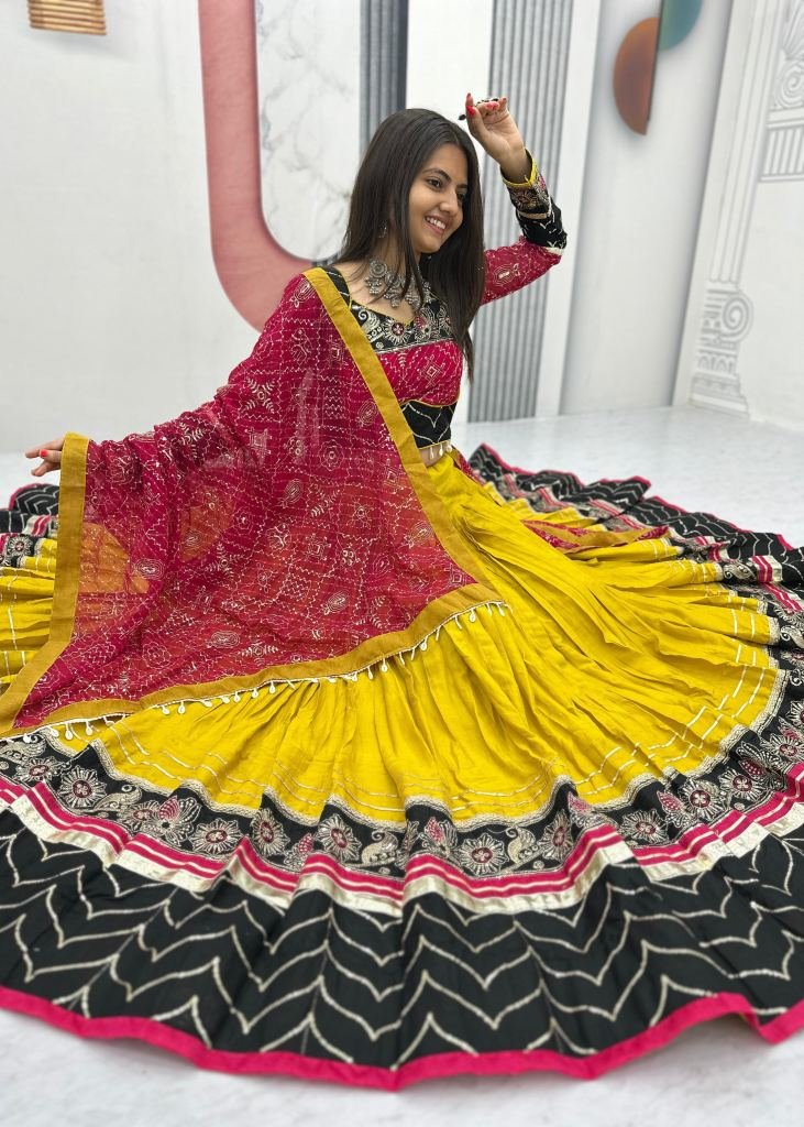 Special Navratri Riyon Cotton And Embroidery Thread With Sequence Work Chaniya Choly Yellow Color DN 264