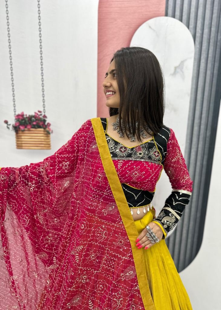 NAME : | Special Navratri Riyon Cotton And Embroidery Thread With Sequence Work Chaniya Choly Yellow Color DN 264 |