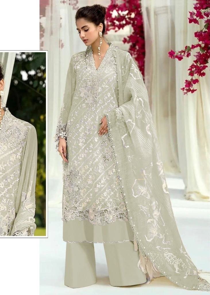 Special Pakistani Maaria A Heavy Fox Georgette And Embroidery Work With Zarkan Pakistani Suit Light Green Color DN 1181