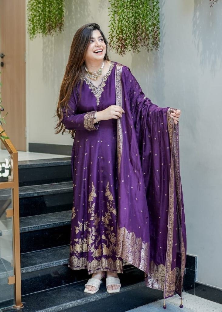 Today Presenting Anarkali Gown 3 piece Kurti Set Banarasi Silks With Handwork