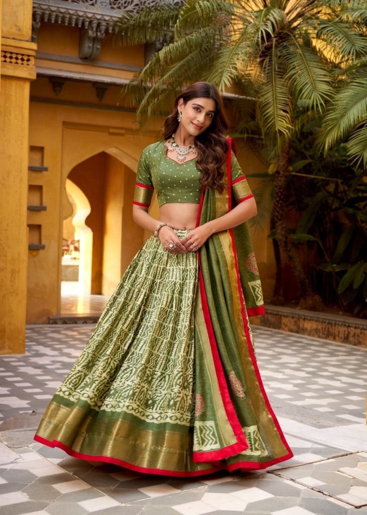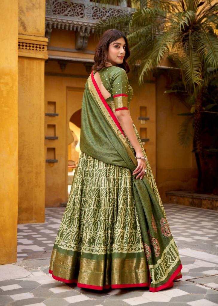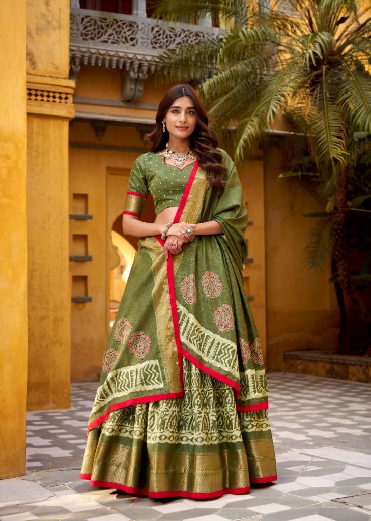 Traditional Elegance In Dola Silk Graceful Batik Art With Zari Weaving Designer Lehenga Choli Green Color DN 1252