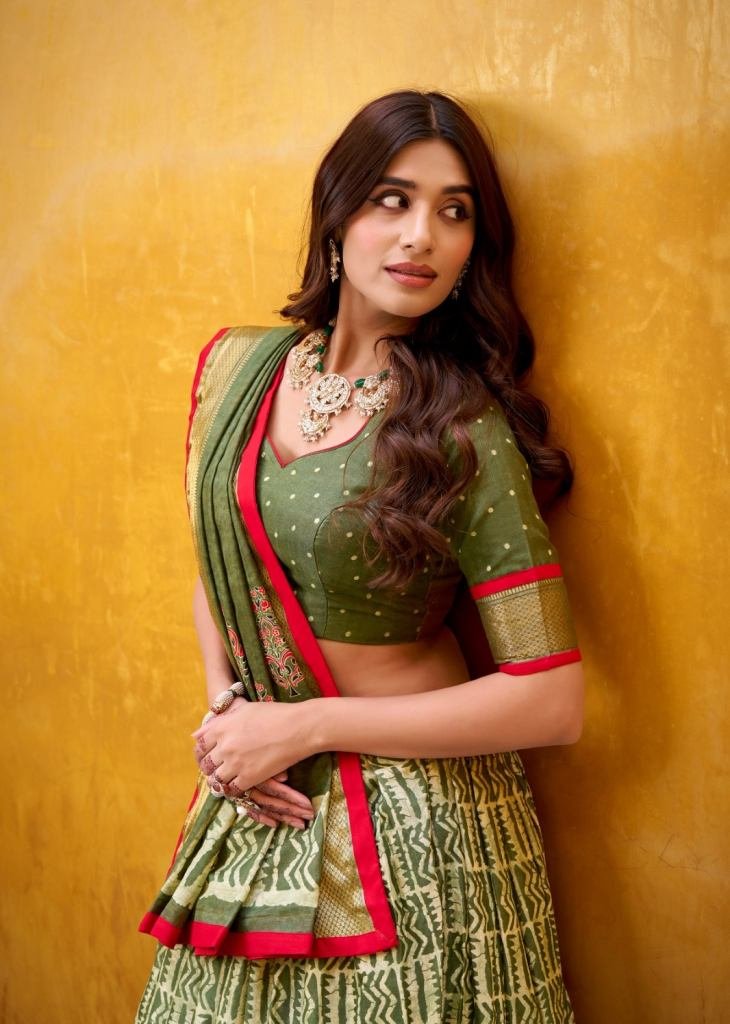| NAME : | Traditional Elegance In Dola Silk Graceful Batik Art With Zari Weaving Designer Lehenga Choli Green Color DN 1252 |