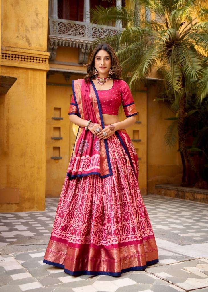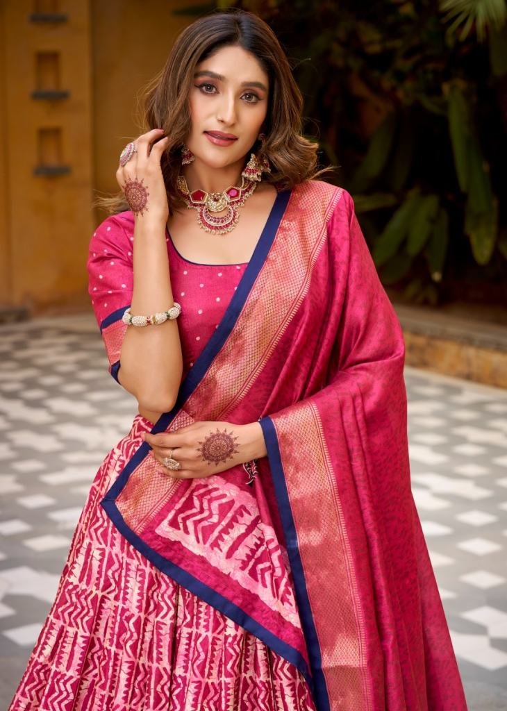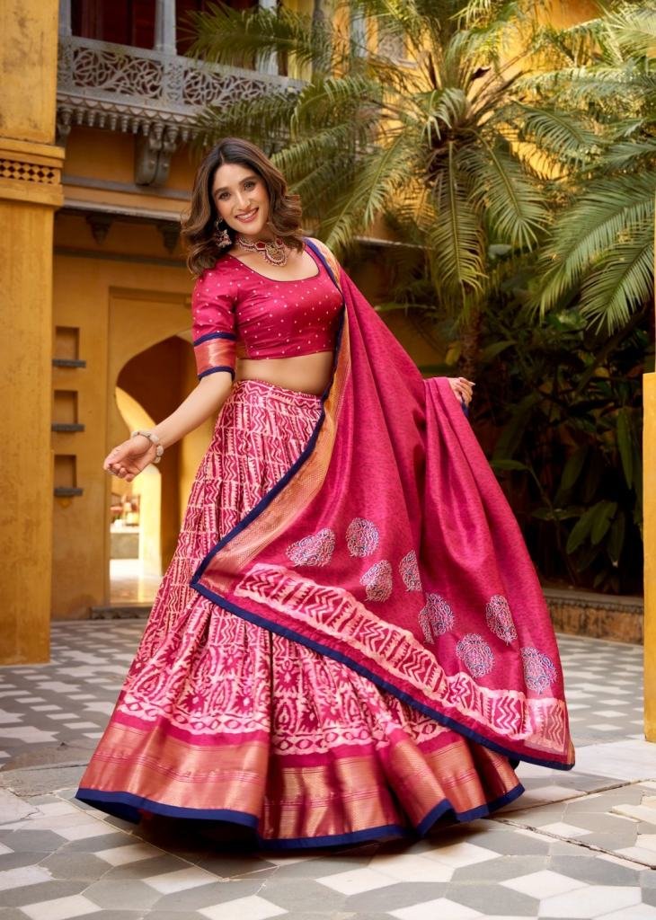 | NAME : | Traditional Elegance In Dola Silk Graceful Batik Art With Zari Weaving Designer Lehenga Choli Pink Color DN 1252 |