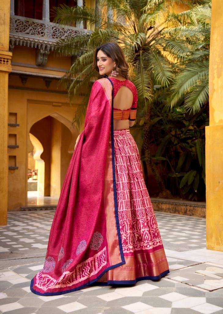Traditional Elegance In Dola Silk Graceful Batik Art With Zari Weaving Designer Lehenga Choli Pink Color DN 1252