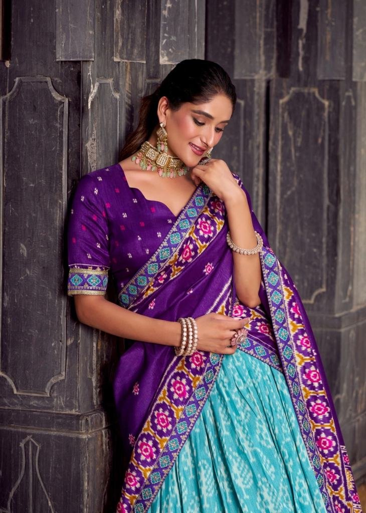 | NAME : | Tussar Silk Lehenga Choli With Ikkat Print Collection Sky Blue Color DN 1246 |