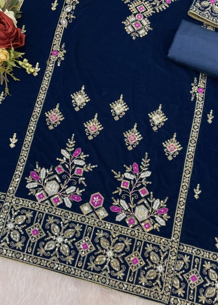 | NAME : | Velvet Salwar Suit With Embroidery Seqance Work Nevy Blue Color DN 1320 |