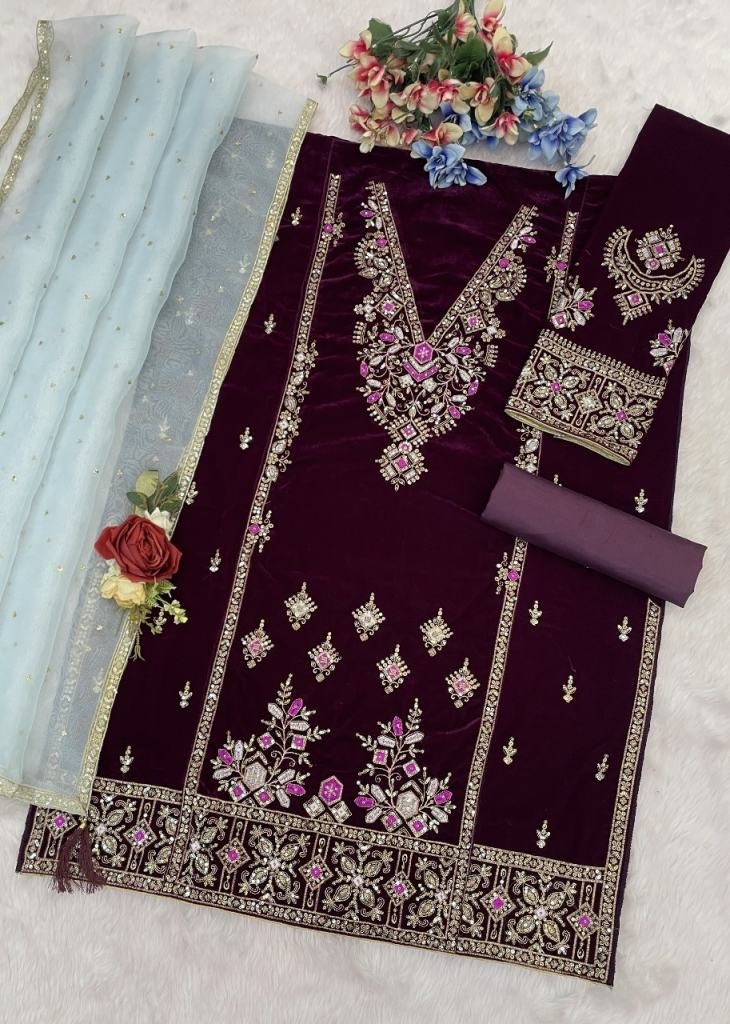 | NAME : | Velvet Salwar Suit With Embroidery Seqance Work Purple Color DN 1320 |