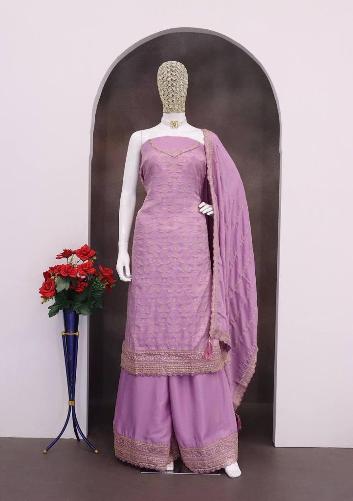 Vinay Fashion Kuleesh Karva Heavy Blooming Viscose Chinon Jacquard Palazzo Suit Pink Color DN 68371