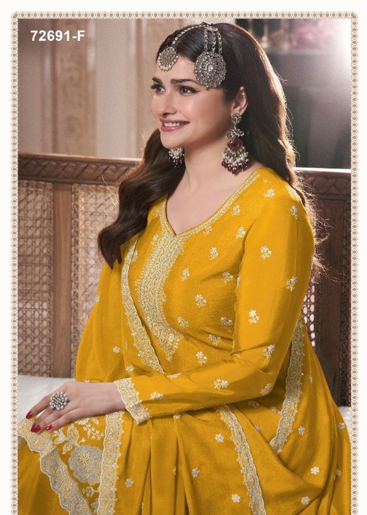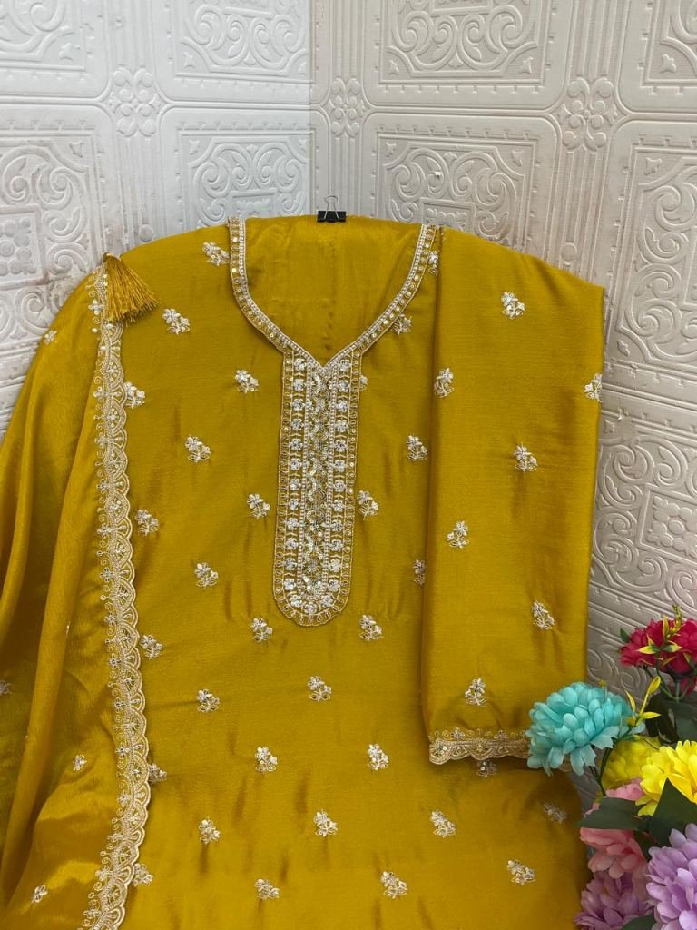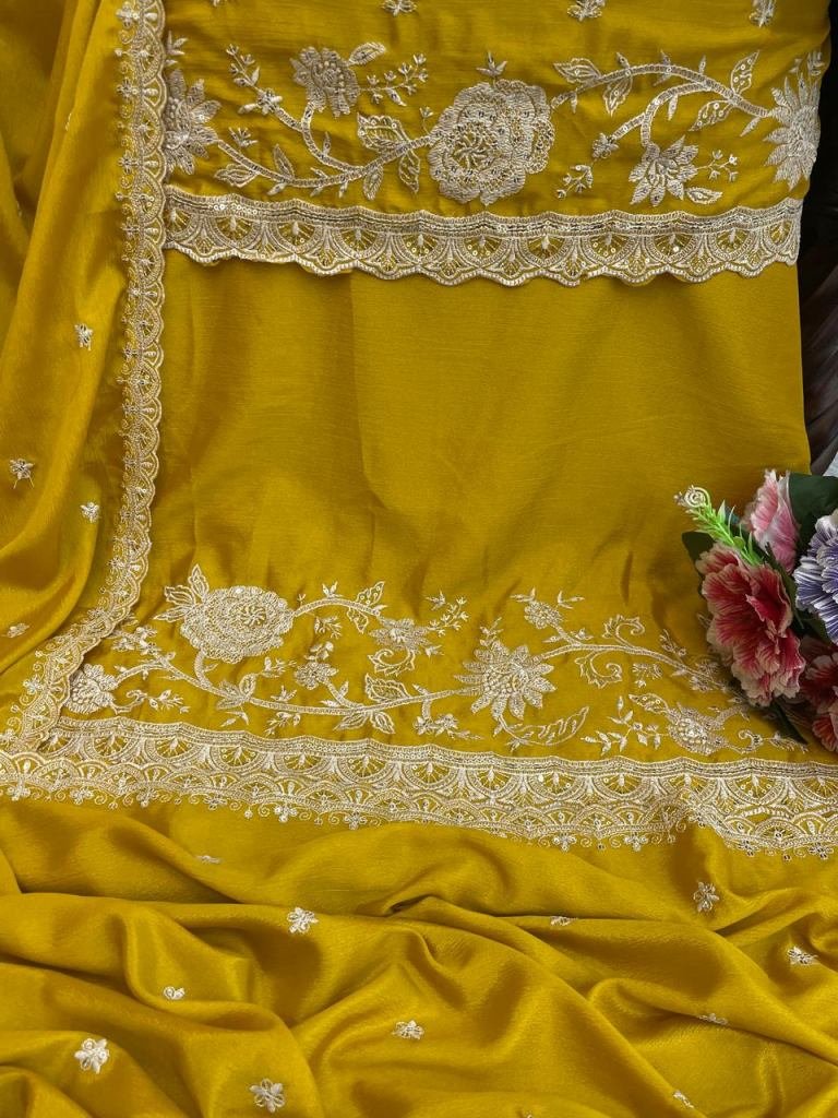 | NAME : | Vinay Kuleesh Saayori Palazzo Suit Semi-Stitched With Embroidered Chinon Fabric Mustard Yellow Color DN 72691 |