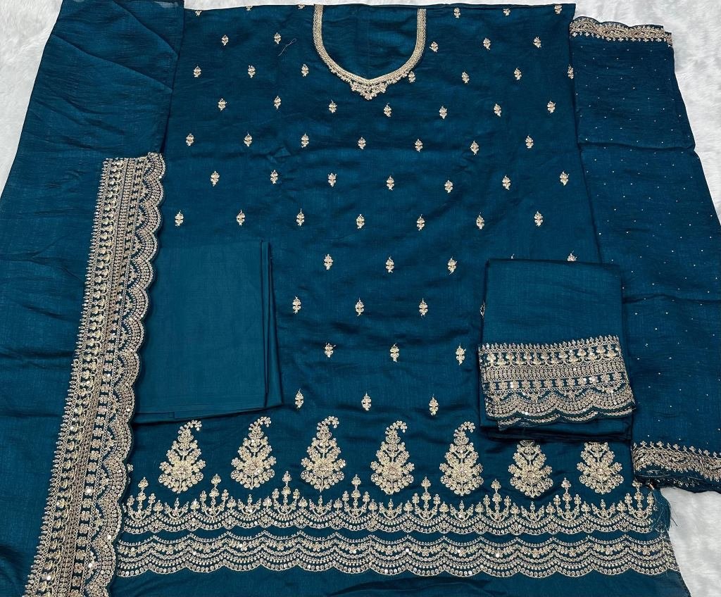 | NAME : | Vinay Kuleesh Shaheen 7 Heavy Silk Georgette With Sequence Embroidery Work Palazzo Suit Teal Blue Color DN 66931 |