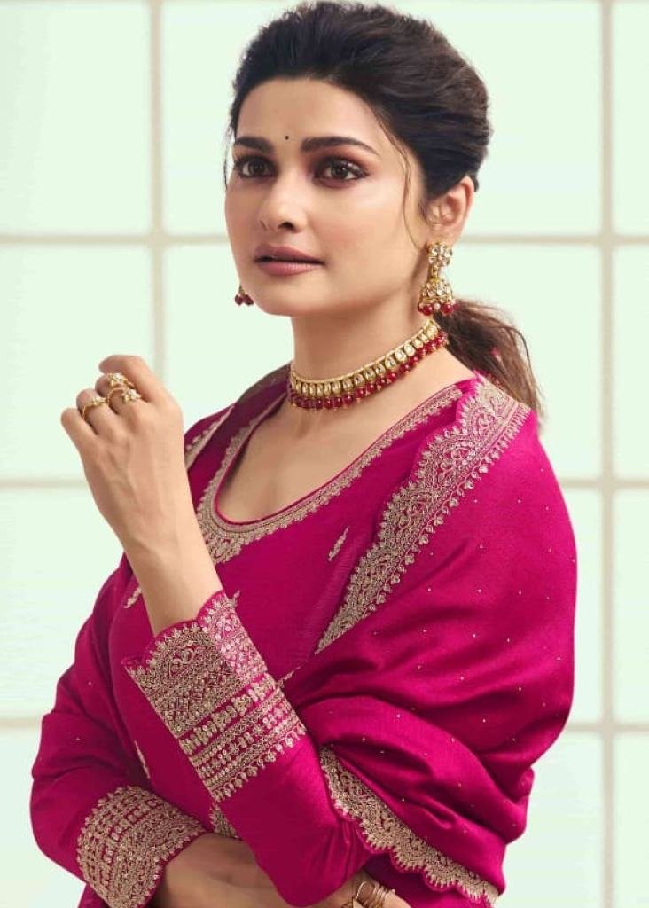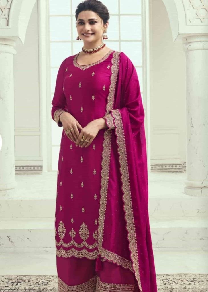Vinay Kuleesh Shaheen 7 Heavy Silk Georgette With Sequence Embroidery Work Palazzo Suit Magenta Color DN 66936