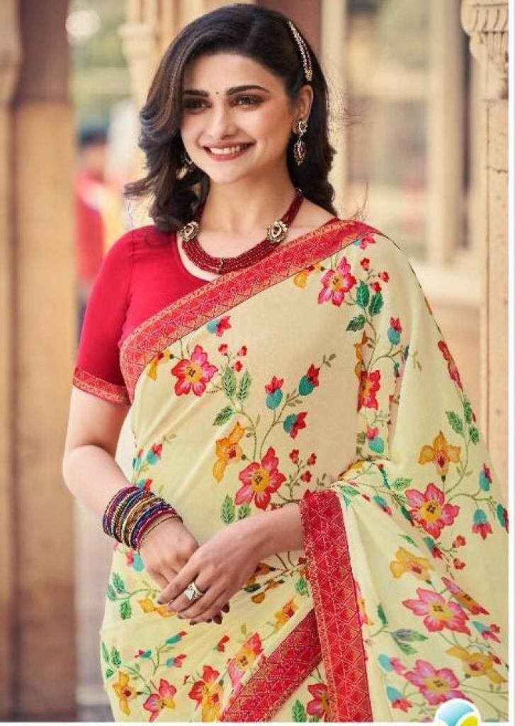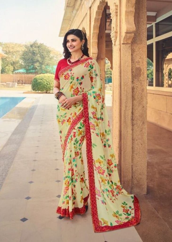 | NAME : | Vinay Prachi Heavy Georgette Silk Printed Saree Cream Color DN 23558 |
