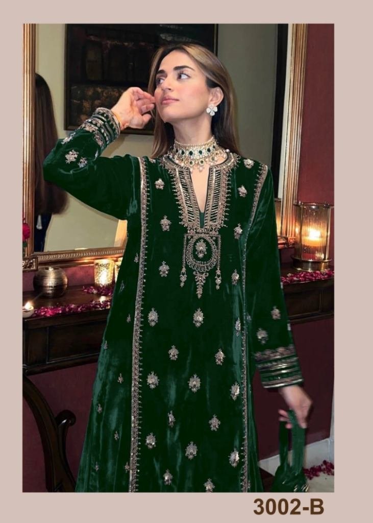 | NAME : | Winter Collection 9000 Pure Velvet Salwar Kameez Suit With Embroidery Work Green Color DN 3002 |