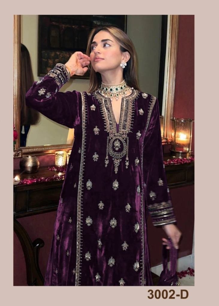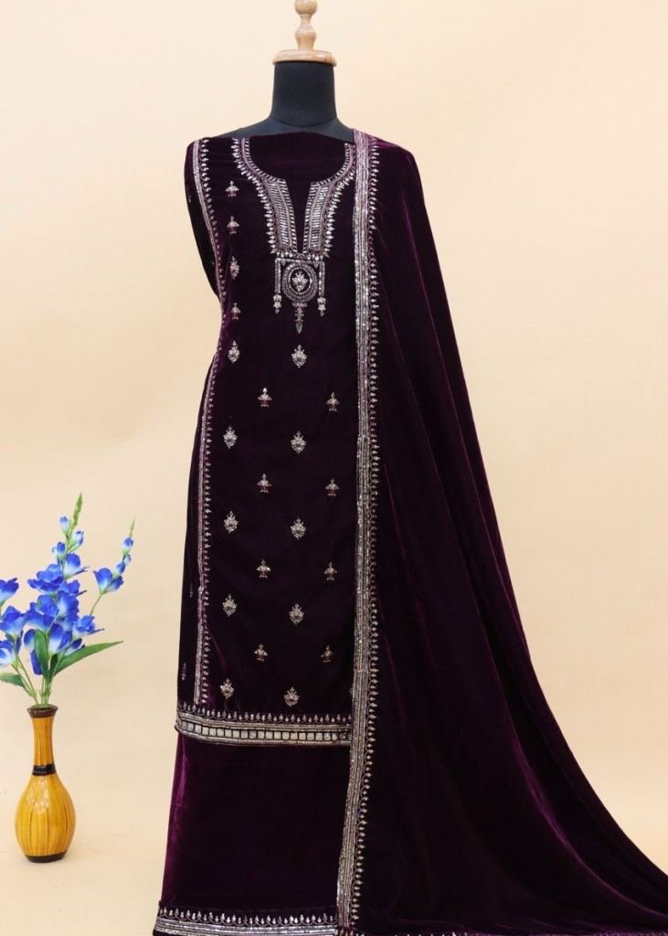 | NAME : | Winter Collection 9000 Pure Velvet Salwar Kameez Suit With Embroidery Work Purple Color DN 3002 |