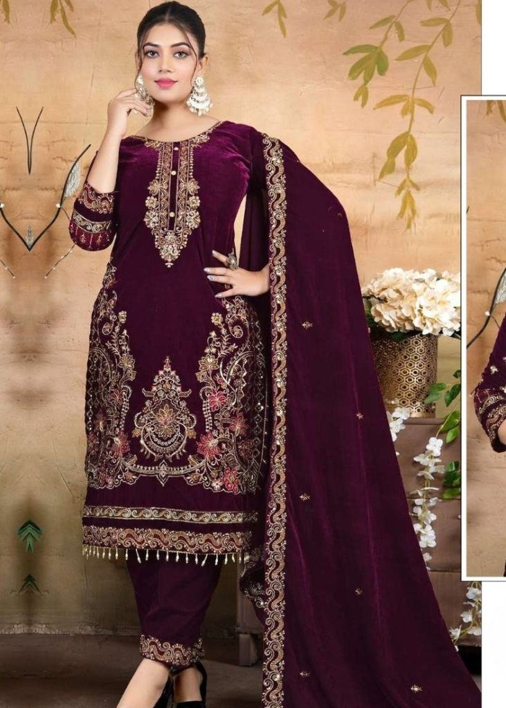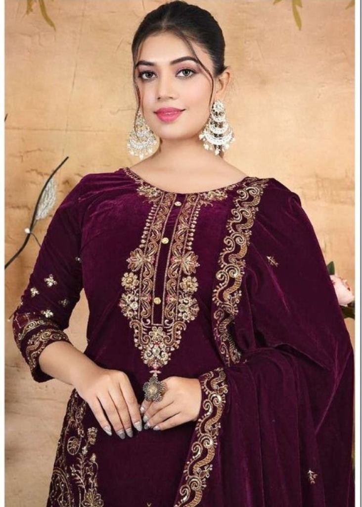 Today Presenting Winter Collection Velvet Salwar Suit With Embroidery Sequence Work With Zarkan & Fancy Lace