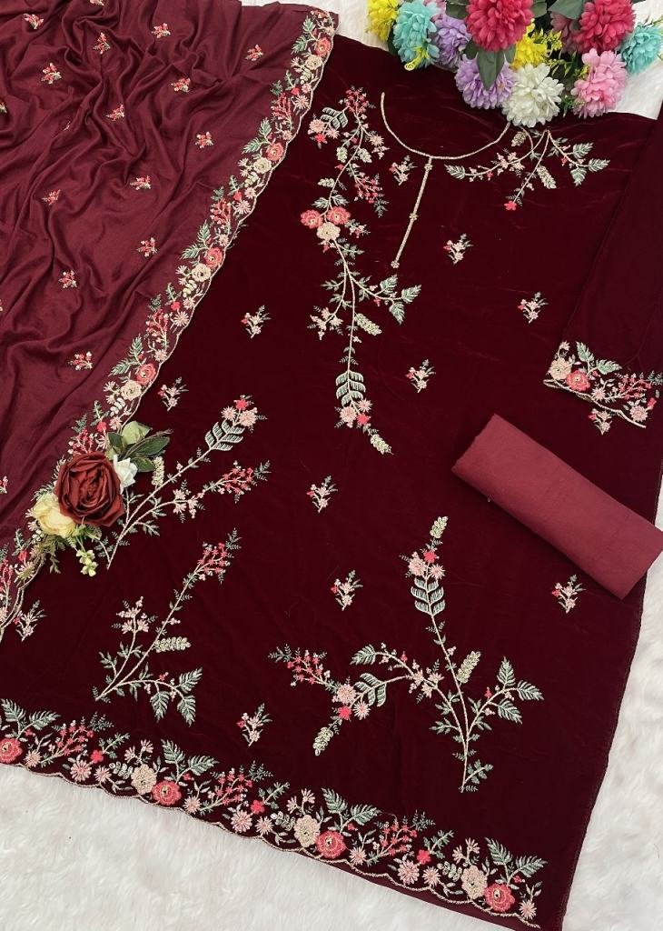 | NAME : | Winter Collection Velvet Salwar Suit With Multi Thread & Sequence Embroidery Work Maroon Color DN 1321 |