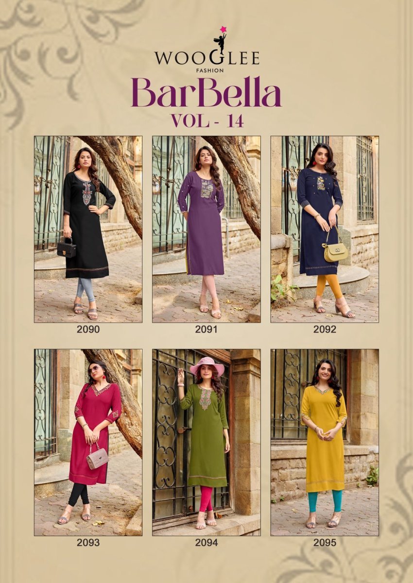 | NAME : | Wooglee Barbella Vol 14 Heavy Rayon Thread And Handwork Kurti Collection |