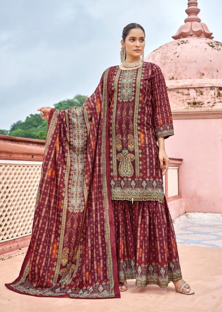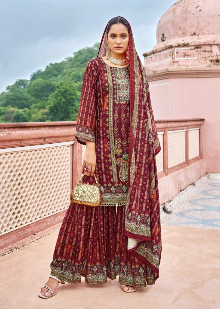 | NAME : | Zoor Readymade Pakistani Suit Pure Crape Silk Digital Print With Orignal Mirror Work Maroon Color DN 1001 |