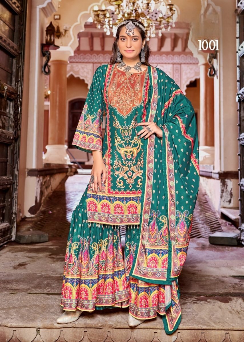 | NAME : | Zubina DN 1001 Pure Crepe Silk Digital Print With Original Mirror Work Radymade Pakistani Suit Sea Green Color |