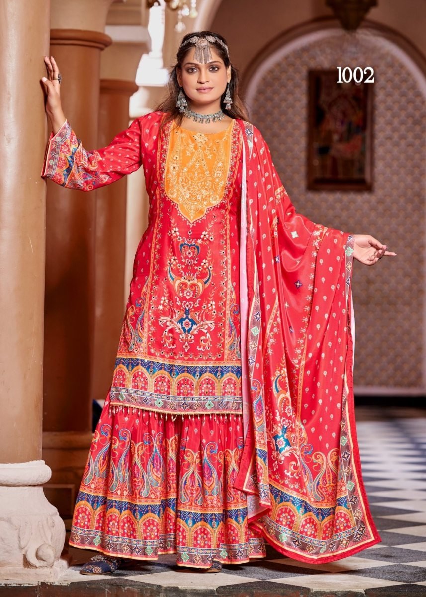 | NAME : | Zubina DN 1002 Pure Crepe Silk Digital Print With Original Mirror Work Radymade Pakistani Suit Red Color |