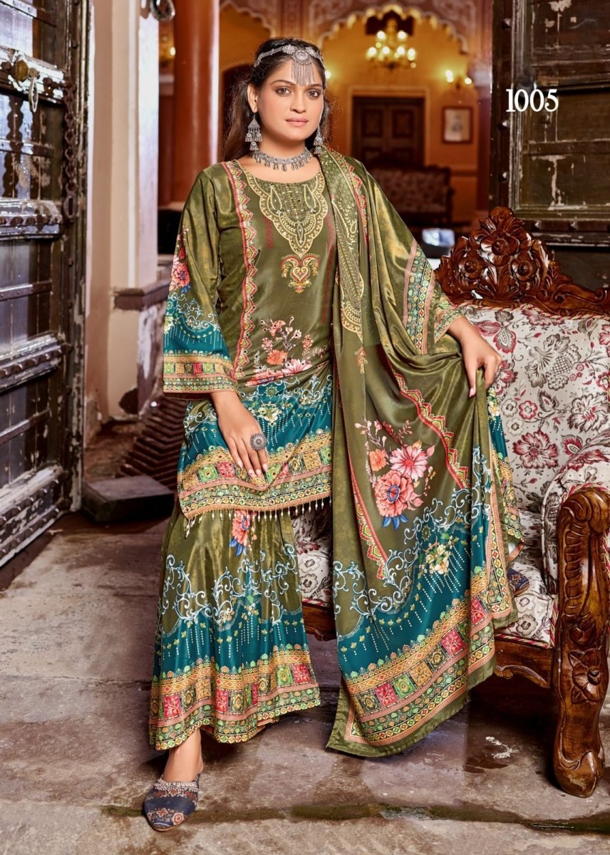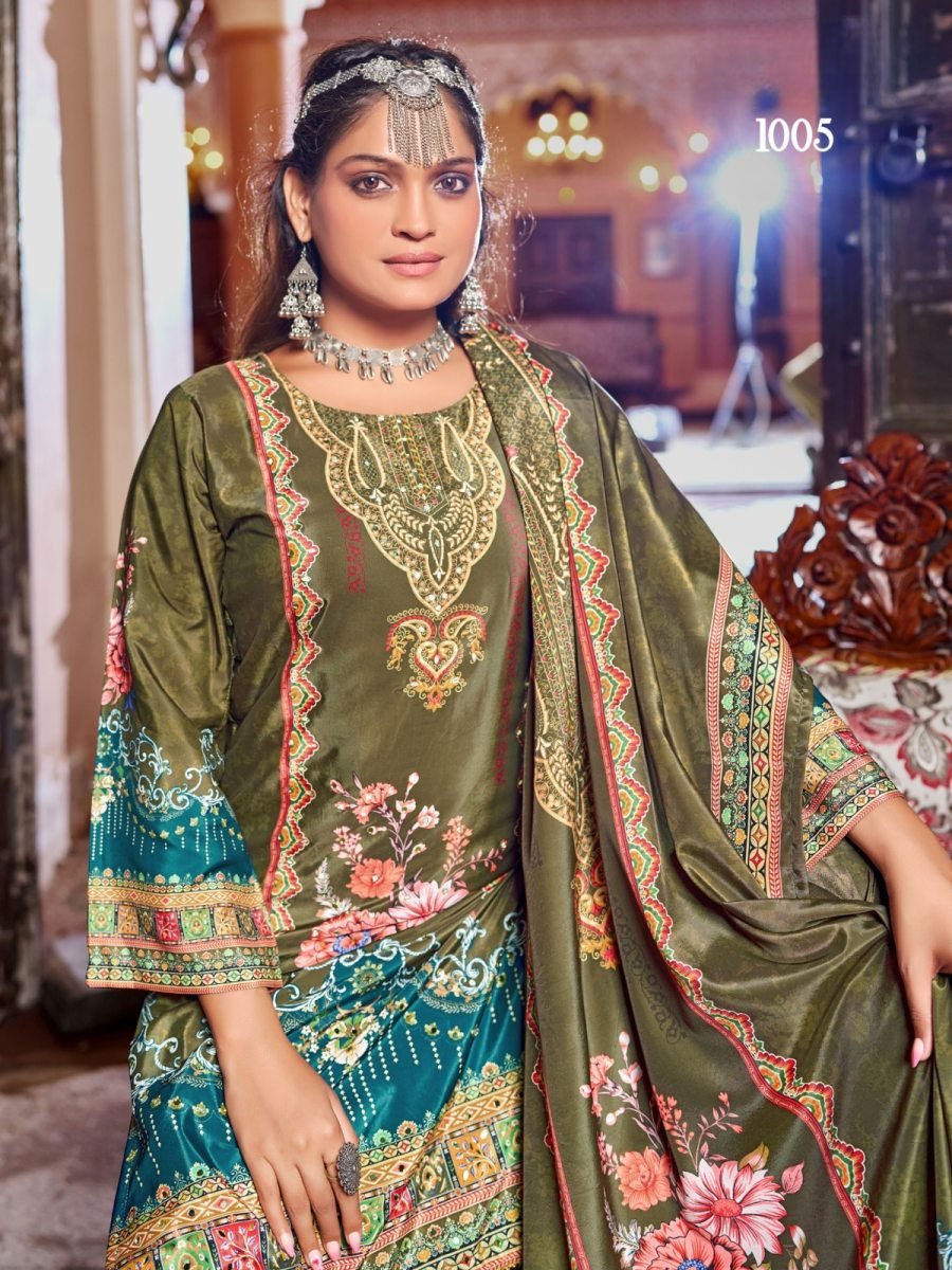 | NAME : | Zubina DN 1005 Pure Crepe Silk Digital Print With Original Mirror Work Radymade Pakistani Suit Green Color |